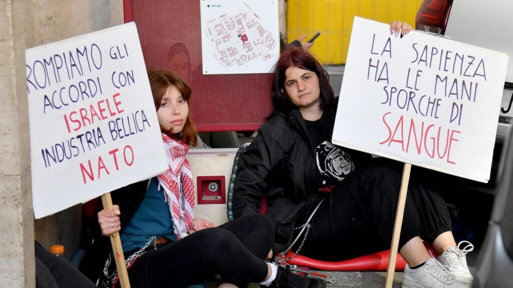 Non è la prima volta: da anni, ormai, collettivi e professori protestano contro l’avanzamento degli accordi di cooperazione e ricerca industriale, scientifica e tecnologica tra le proprie facoltà e i vari ministeri e industrie del settore bellico. Già due anni fa, nel 2022, numerosi collettivi universitari si erano mobilitati in solidarietà con il Kurdistan, contro i bombardamenti turchi e gli accordi tra aziende belliche, ma anche contro la guerra tra Ucraina e Russia, chiedendo sempre di rompere gli accordi e i finanziamenti con il mondo militare, in particolare con Leonardo, azienda leader nel settore. «La ricerca, la logistica e la produzione di armi sono i punti chiave da bloccare, per sabotare le guerre, fermare il genocidio del popolo palestinese, sostenere concretamente le popolazioni che subiscono la violenza della guerra sulla propria pelle», scrivono su un volantino gli studenti della Sapienza di Roma, finiti sui notiziari per le manganellate subite durante un presidio poi corteo al rettorato per chiedere la sospensione degli accordi con gli atenei israeliani. «Gli studenti e le studentesse della Sapienza hanno individuato questo obiettivo: bloccare gli accordi di ricerca tra l’istituzione accademica romana e quelle israeliane, consapevoli che la ricerca e la cultura non sono neutrali».