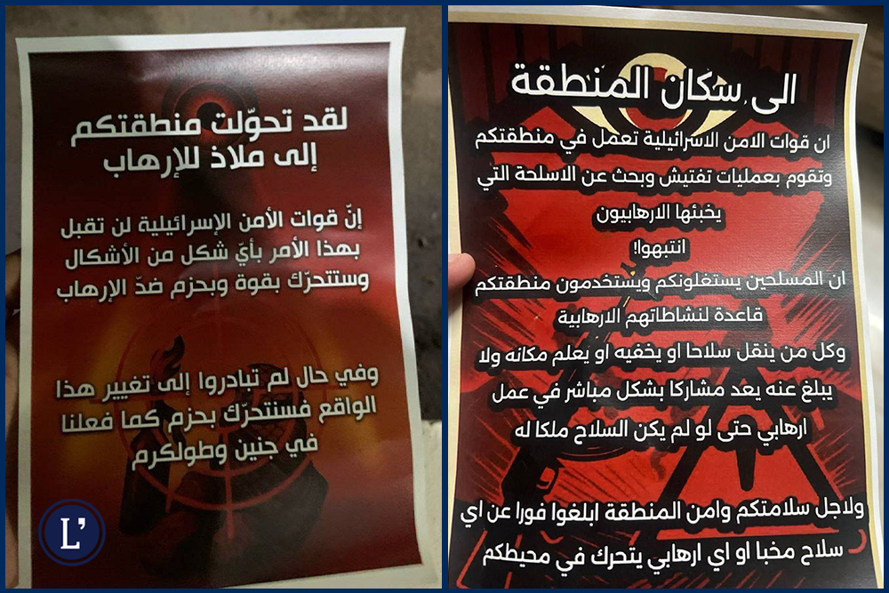 I volantini che i militari israeliani hanno lasciato agli abitanti di Tubas in cui esplicitano i loro piani di causare danni alla popolazione della città