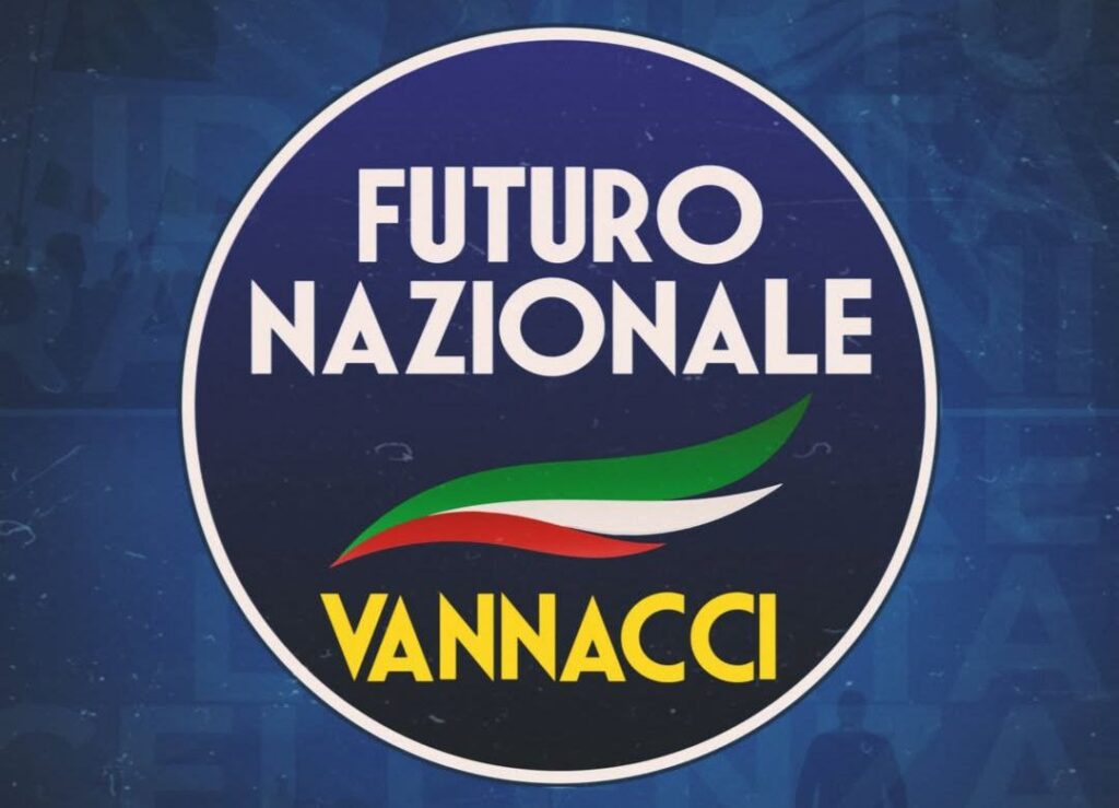 La nascita di Futuro Nazionale è stata annunciata qualche giorno prima della scissione di Vannacci con la Lega. Il logo del partito, dalla forma circolare, si presenta con un rimando alla fiamma tricolore (storico simbolo dell’MSI, partito che nacque dalle ceneri del fascismo nell’immediato dopoguerra, il cui simbolo è ancora presente in piccolo sullo stemma del partito della premier Meloni, Fratelli d’Italia), e con il nome del partito scritto per intero in bianco su sfondo blu; è curioso notare come FN (le iniziali del partito) sia una sigla storicamente vicina all’estrema destra italiana: fu già sigla di Forza Nuova e del Fronte Nazionale, il partito di Junio Valerio Borghese, comandante della X° MAS tanto cara a Vannacci e fascista della prima ora, autore del noto golpe Borghese; lo stesso Partito Nazionale Fascista aveva la sigla PNF. A chiudere il logo, in basso, la scritta “Vannacci” in giallo.