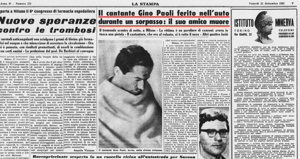 Non è comunque fuori pericolo. La ferita è molto grave e viene trasferito all’ospedale di Torino per essere visitato da uno specialista. Il colpo di pistola è arrivato a pochi centimetri dal cuore ed è rimasto bloccato nel torace senza però danneggiare organi vitali. Clinicamente parlando, Gino Paoli ha ucciso il proiettile. Si porterà dentro il cadavere per il resto della sua vita.