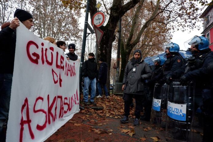 TORINO – Almeno quattrocento poliziotti mobilitati solamente per la giornata di oggi, un intero quartiere militarizzato, il traffico di una grossa parte della città interdetto. Così si presenta Torino a 48 ore dallo sgombero del centro sociale Askatasuna, avvenuto nella mattina del 18 dicembre scorso. Le scuole in zona sono chiuse da tre giorni e anche i negozi oggi hanno le saracinesche abbassate. Per impedire l’avvicinarsi al centro sociale, le forze dell’ordine hanno installato barriere in cemento armato e ferro. Le stesse utilizzate in Val di Susa, per proteggere i cantieri della TAV, per lo più pieni solamente di agenti. Un intero quartiere stretto nella morsa di un’operazione di polizia, culminata nelle cariche alla manifestazione di oggi. Alle 15 circa, infatti, migliaia di cittadini si sono messi in marcia a partire dall’università di Palazzo Nuovo per protestare contro la decisione del governo. Mentre l’amministrazione comunale sembra ancora indecisa sulla direzione da prendere, col sindaco Lorusso che prima ha dichiarato nullo il patto tra il centro e il Comune ma che in un video messaggio diffuso stamattina ha detto di “guardare al futuro di corso Regina 47”, la cittadinanza è scesa in piazza per far sentire il proprio dissenso. Incontrando, durante il percorso, i lacrimogeni e i manganelli della polizia.