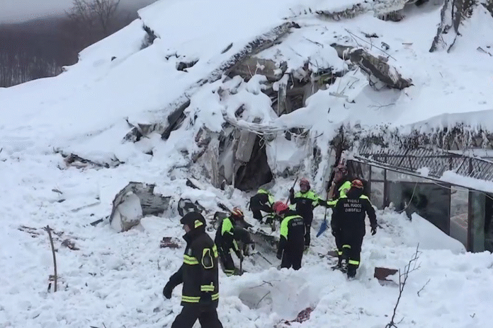I fatti si consumarono poco dopo le 16:40 del 18 gennaio 2017, quando, in seguito ad alcune scosse sismiche, dal Monte Siella si staccò una valanga di circa 120mila tonnellate che travolse il resort a Farindola. Nella struttura erano presenti 40 persone. La prima segnalazione partì alle 17:08 dal cuoco Giampiero Parete, scampato al disastro perché fuori dall’edificio, ma inizialmente venne sottovalutata e inquadrata come falso allarme. Solo in serata la Protezione civile attivò i soccorsi, rallentati da neve e blackout. I soccorritori raggiunsero la struttura alberghiera all’alba del 19 gennaio: nei giorni successivi furono estratti vivi diversi superstiti, alcuni dopo oltre 60 ore sotto la neve. Le operazioni terminano il 25 gennaio, con un bilancio di 29 morti e 11 superstiti.