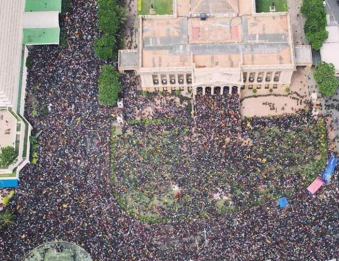Le proteste in corso da settimane nello Sri Lanka sono sfociate sabato in un assalto all’abitazione del presidente Gotabaya Rajapaksa, accusato dai manifestanti di essere il maggior responsabile della crisi economica che il Paese sta vivendo. Le decine di migliaia di persone giunte negli scorsi giorni nella capitale, Colombo, per chiederne le dimissioni insieme a quelle del primo ministro – nelle ultime 48 ore – hanno circondato e fatto irruzione nella residenza del Presidente, che è fuggito in elicottero. Lo scenario si è ripetuto anche davanti ad altri palazzi del potere come il segretariato del Ministero della Finanze e la residenza del premier Ranil Wikremeshinghe, data ieri alle fiamme.