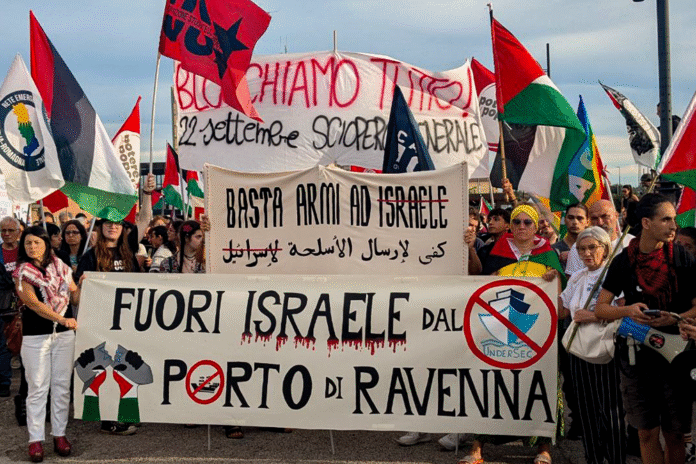 Nel momento in cui Israele compie un ulteriore passo nell’offensiva nella Striscia di Gaza, occupando Gaza City, e mentre la comunità internazionale continua ad esitare nel fare dei passi decisivi ancora dopo due anni di genocidio contro la popolazione civile,da Ravenna si alza forte la voce dei cittadini. Ieri, martedì 16 settembre, migliaia di persone sono scese in piazza contro l’invio di armi dal porto romagnolo, da cui continuano a partire forniture a sostegno dell’esercito di Netanyahu.