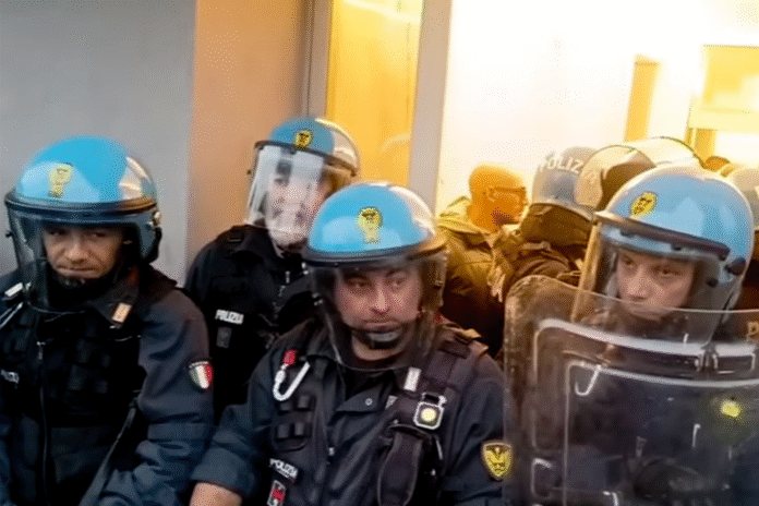 Una volta abbattuta la porta, un folto gruppo di poliziotti è entrato nell’appartamento, abitato da una famiglia con tre minori, di cui una pare essere una bambina affetta da autismo; il padre, invece, avrebbe un disturbo cardiaco. Trascinato il nucleo familiare fuori dall’appartamento, gli agenti si sono spostati verso il secondo alloggio. Questo confina con il primo, ed è stato raggiunto dalla squadra di poliziotti a colpi di martellate: gli agenti hanno aperto una voragine nella parete che divideva i due appartamenti, e sono entrati mentre dentro si trovava ancora la famiglia di locatari. Nel frattempo, di fuori, una cinquantina di persone si sono riunite in presidio solidale per provare a fermare gli sfratti. Gli agenti hanno sfoderato scudi e manganelli e caricato il presidio nei pressi dell’ingresso dello stabile, ferendo alcuni dei presenti; in un video del PLAT si vede un rappresentante sindacale ferito alla testa.