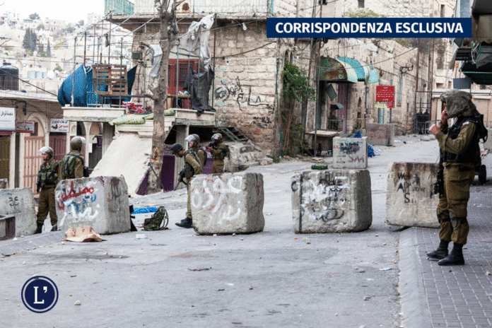 «La situazione qui è sempre più difficile», mi dice Qusay, un uomo sulla quarantina, pochi secondi dopo che sei soldati dell’IDF, fucili in braccio, ci passano davanti in uno dei loro quasi quotidiani raid. Siamo nel cuore della città vecchia di Hebron. La “città divisa”, la Palestina in miniatura. Spaccata a metà da muri, check-points, telecamere con armi semi-automatiche, militari. «Ho paura per mia figlia. [I militari] vengono quasi tutti i giorni. Non è più sicuro qui». È il giorno prima del Shabbat Chayei Sarah, la ricorrenza religiosa ebraica che si tiene ogni anno a Hebron per promuovere la narrazione della presenza storica ebraica nella città. Una ronda di soldati israeliani sorprende la mia colazione mattutina, ma nessun altro per strada è stupito: ormai le divise e le armi israeliane fanno parte del panorama della città vecchia.