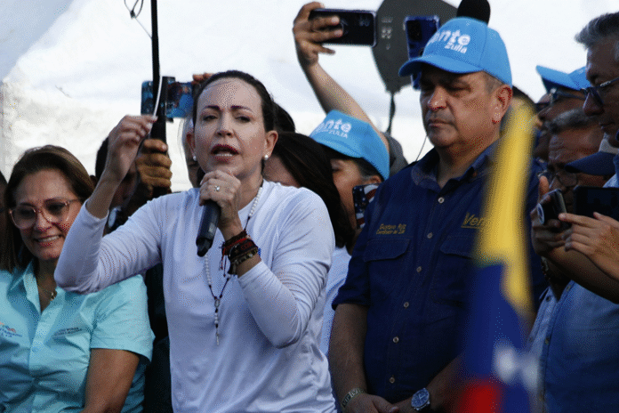 Con il tempo, si è affermata come una delle figure più visibili dell’opposizione anti-chavismo. Nel 2023 si è candidata alle primarie dell’opposizione e ha ottenuto l’investitura, ma poco dopo è stata esclusa dalla vita politica: Contraloría General de la República – l’organo supremo di controllo contabile e amministrativo dello Stato venezuelano – l’ha dichiarata ineleggibile per quindici anni, una misura che le ha impedito formalmente di partecipare al voto, con accuse di finanziare attività contro lo Stato e collusione con atti connessi a Juan Guaidó. Di fatto, il suo campo d’azione è diventato la mobilitazione esterna sempre sotto l’ombrello di Washington, gli appelli internazionali, la denuncia continua del governo di Maduro. Nel 2023, ha vinto le primarie dell’opposizione in vista delle presidenziali, ma le autorità elettorali le hanno impedito la candidatura. Machado ha, quindi, guidato la campagna per il candidato Edmundo Gonzalez Urrutia. Nel 2024 il Parlamento europeo ha assegnato a Machado e Urrutia il Premio Sakharov per la libertà di pensiero.